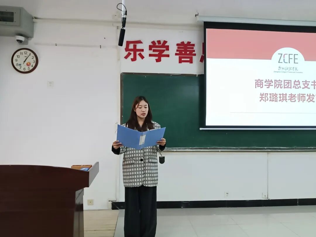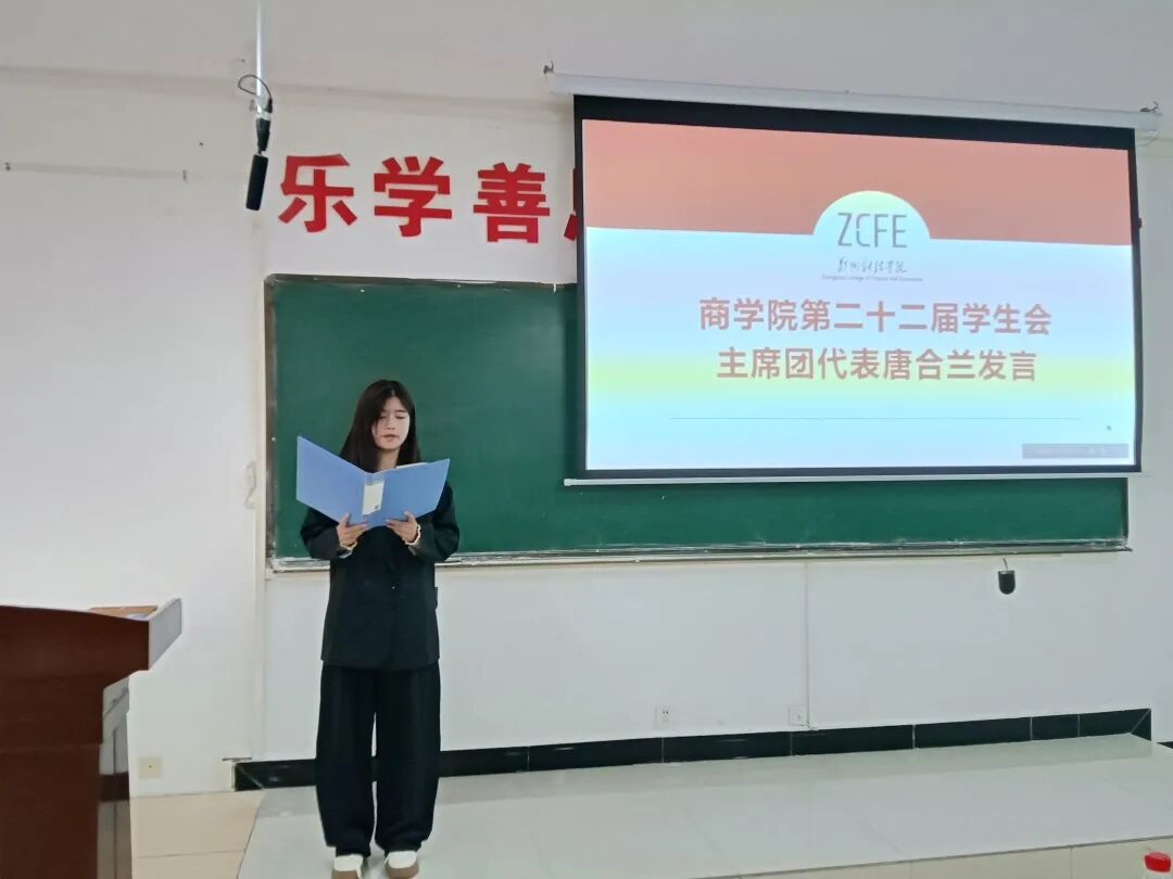 大会在庄严的国歌声中拉开帷幕。首先,商学院团总支书记郑璐琪致词,她充分肯定了第二十一届学生会的工作成果,对全体成员的辛勤付出表示感谢,并对新一届学生会寄予殷切期望,希望大家能继往开来,在服务同学、建设学院的道路上再创佳绩。