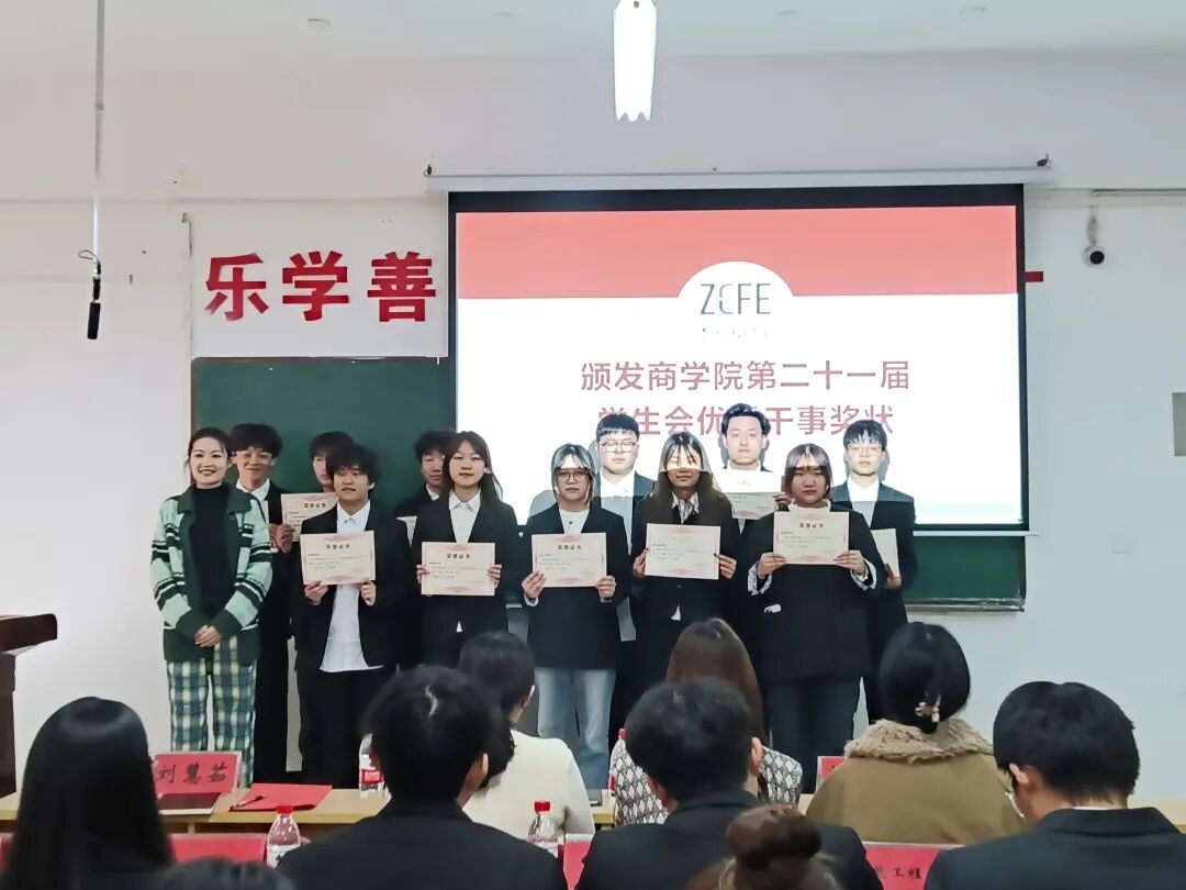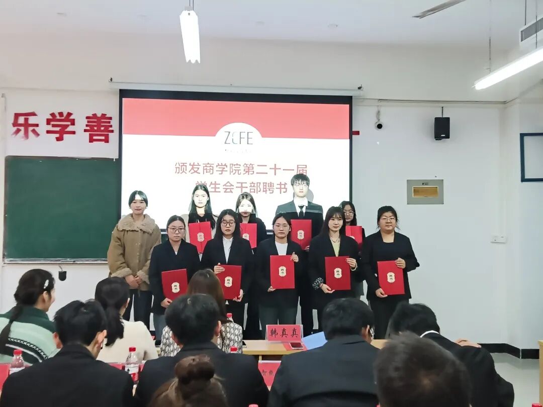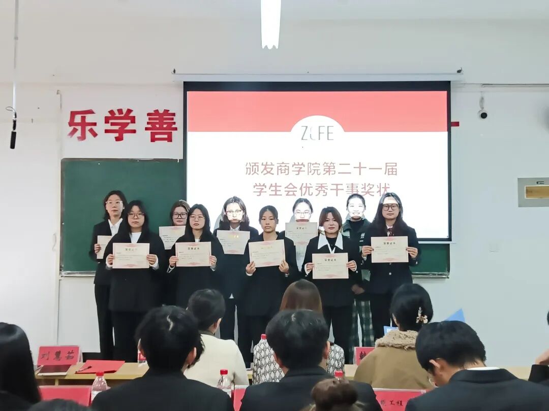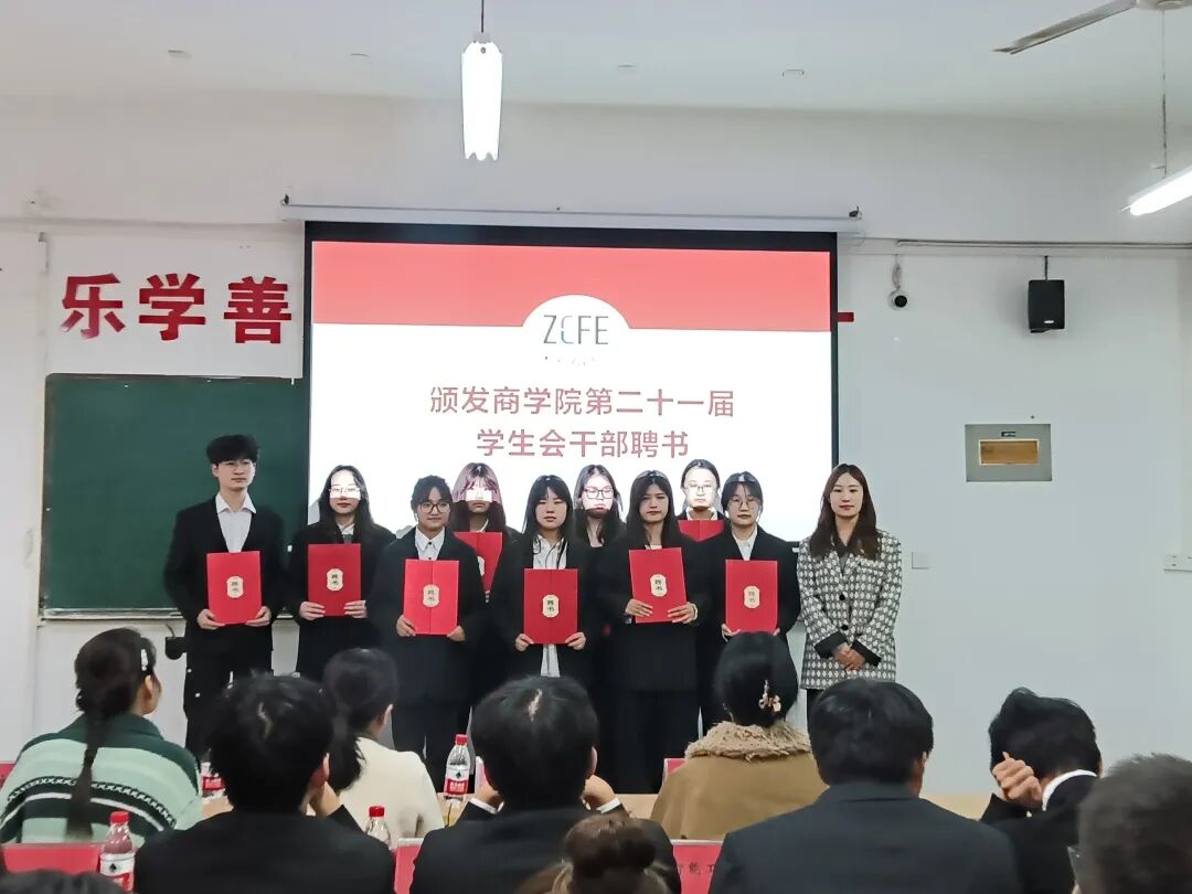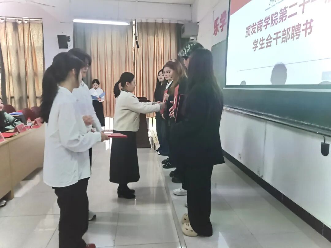 在第四项议程中,现场进行了聘书及优秀干事奖状的颁发仪式。这既是对第二十一届学生会成员工作的肯定与表彰,也激励着新一届成员以他们为榜样,积极投身学生会工作。
