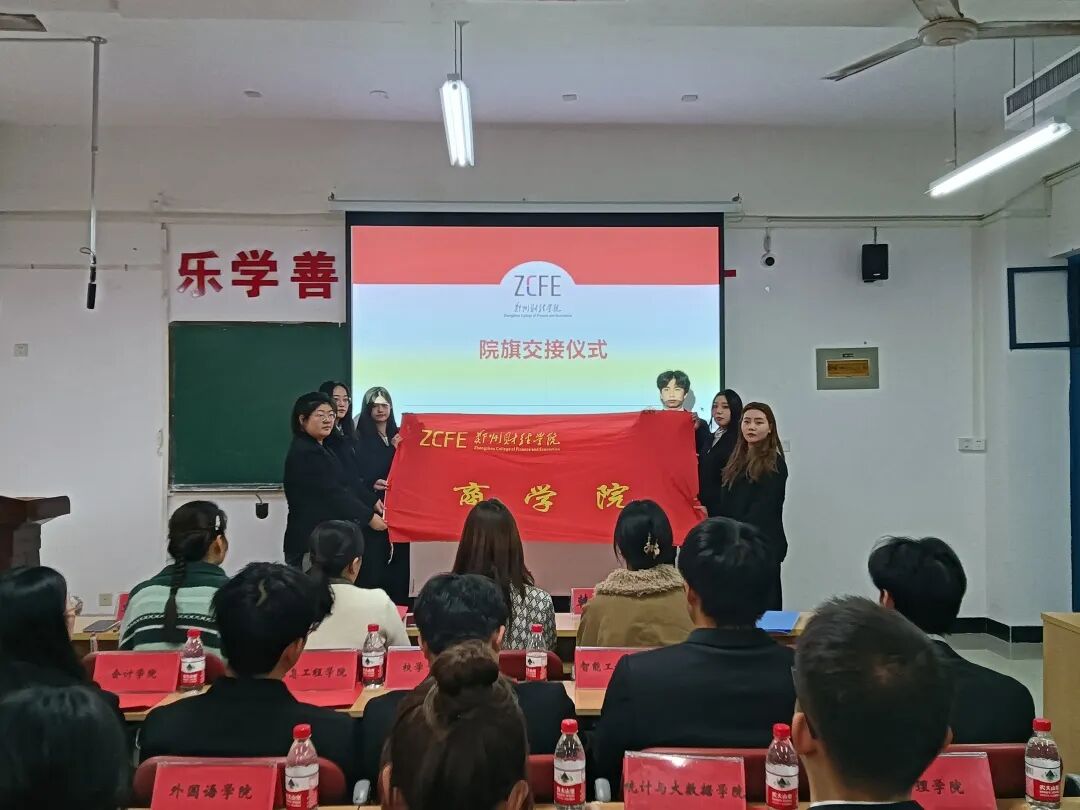 紧接着,商学院团总支副书记韩真真宣读了新任学生会干部、第二课堂管理中心干部及青年志愿者协会干部名单,为新一届学生会的领导团队揭开了面纱。并进行了院旗交接仪式,第二十一届学生会代表将院旗郑重地交到第二十二届学生会主席团代表手中。