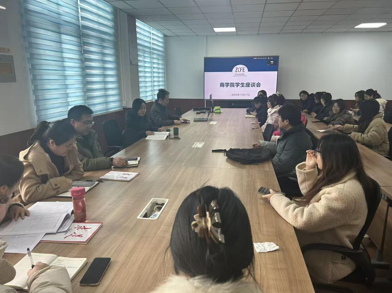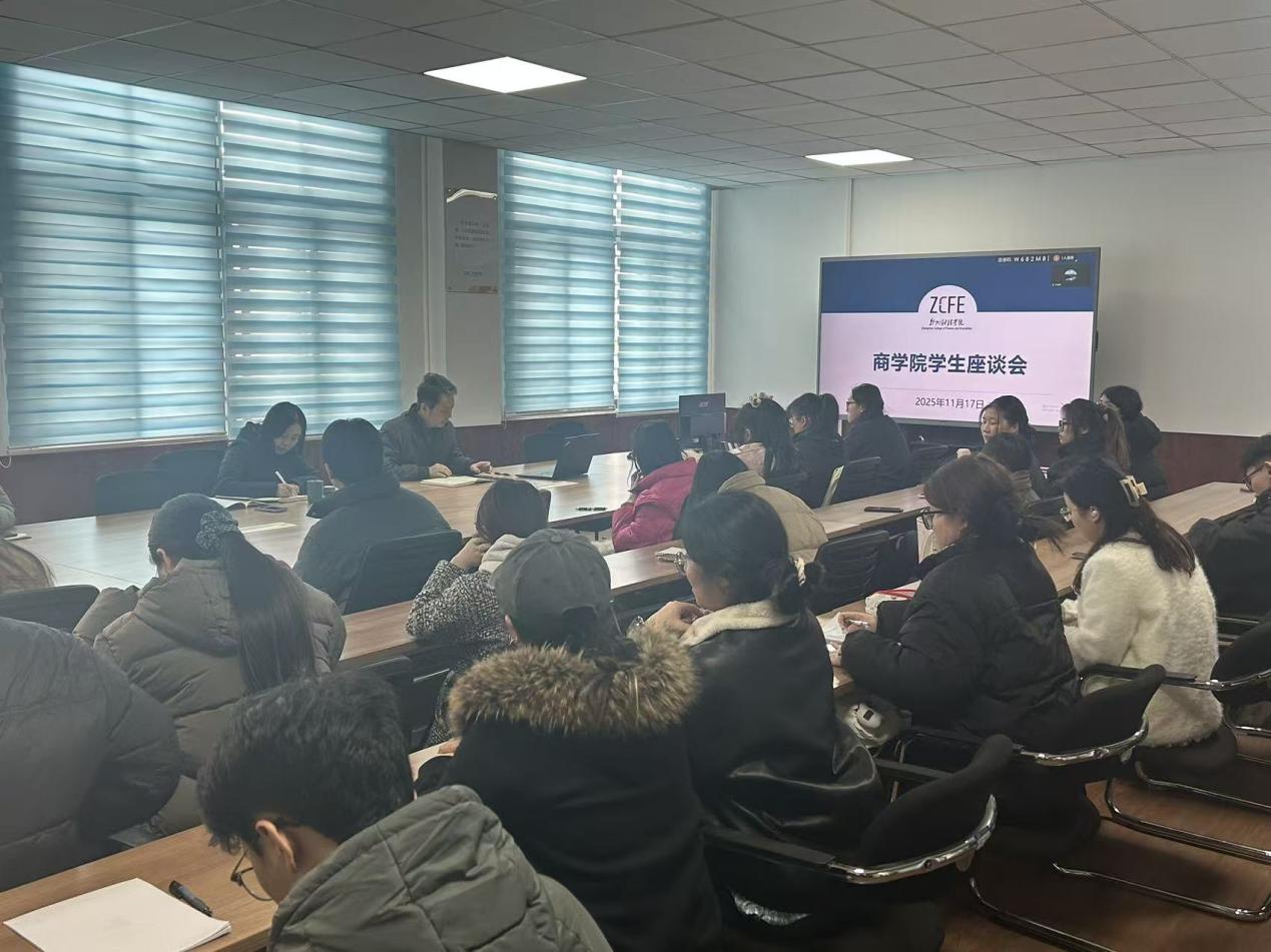 为进一步规范教学管理,持续加强教风学风建设,商学院于2025年11月17日下午在德惠楼202会议室召开学生座谈会。党总支书记宋艳萍、副书记李云亭、教研室主任、学工办主任、团总支书记以及学生代表参会。本次座谈会由教学副院长郭瑞强主持。