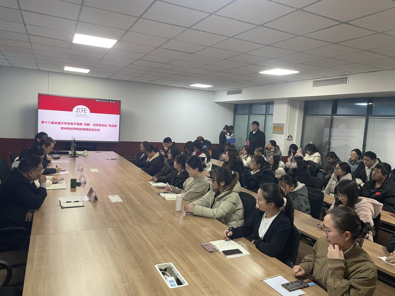2025年12月9日,郑州财经学院第十六届全国大学生电子商务“创新、创意及创业”挑战赛(简称“三创赛”)校级赛启动仪式在德惠楼202会议室顺利举行。商学院党总支书记宋艳萍、副院长郭瑞强、电子商务教研室主任武建伟等出席仪式,往届获奖师生代表及本届参赛学生代表共同参加。