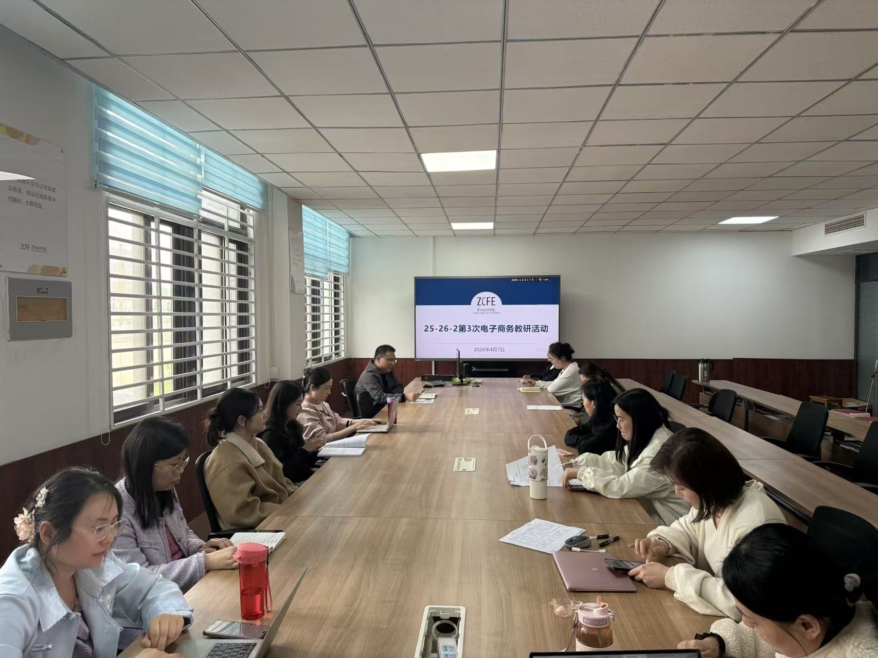 为持续深化课堂教学改革,提升人才培养质量,2026年4月7日下午,商学院电子商务教研室在德惠楼202会议室召开“以学生为中心的‘金课’建设与教学设计优化”专题教研会议。本次会议由电商教研室主任武建伟主持,教研室全体教师参会。