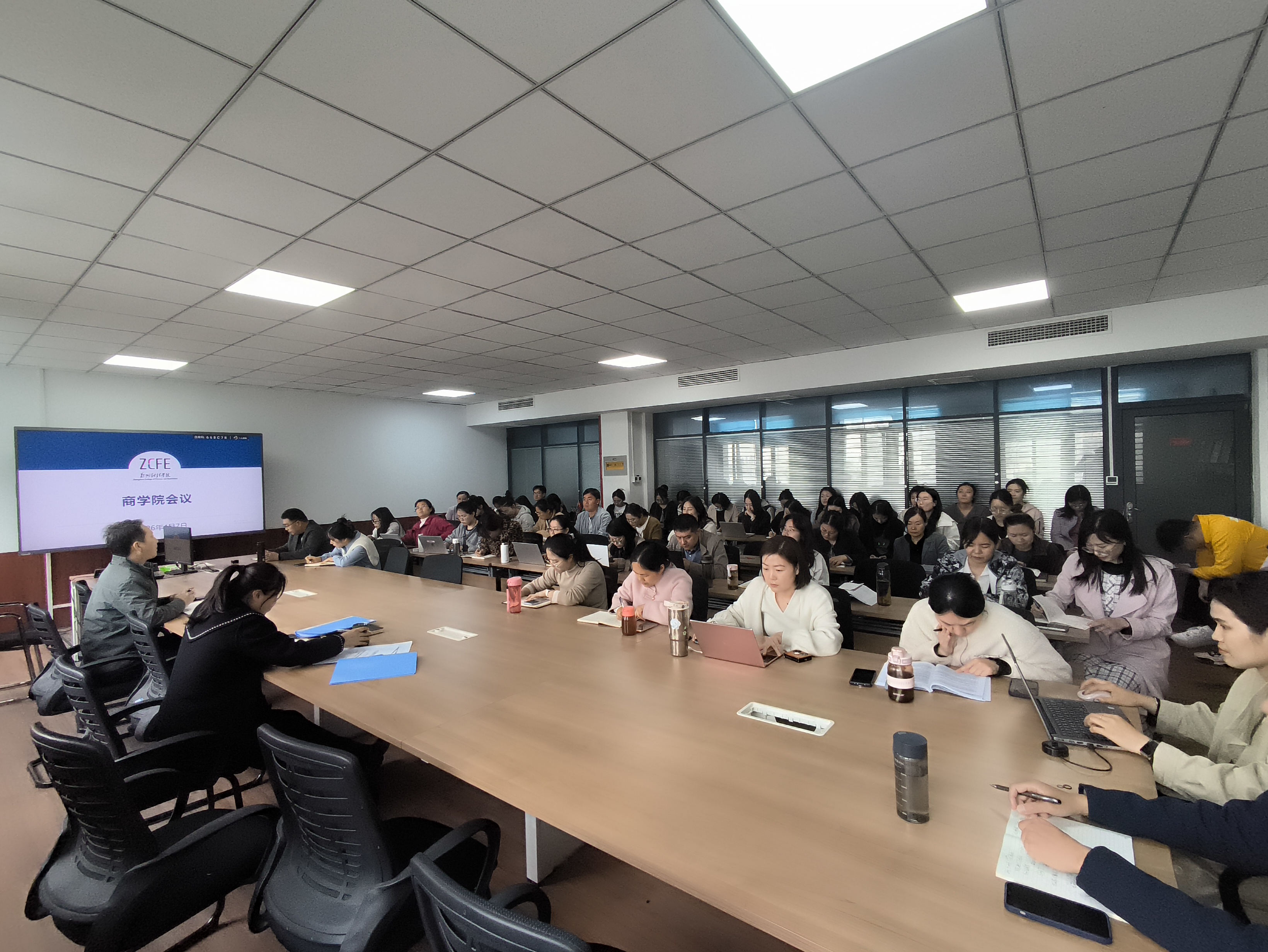 4月7日,商学院于德惠楼202会议室召开商学院全员大会。学院党总支书记宋艳萍、教学院长郭瑞强出席会议,全院教师参加会议,会议由郭瑞强主持。